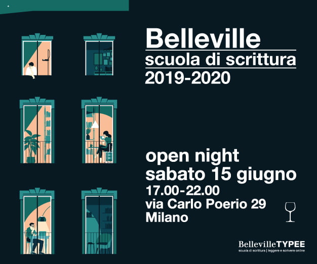 Sabato 15 giugno dalle 17.00 alle 22.00, la Scuola di scrittura Belleville apre al pubblico per presentare i corsi in partenza a ottobre 2019.