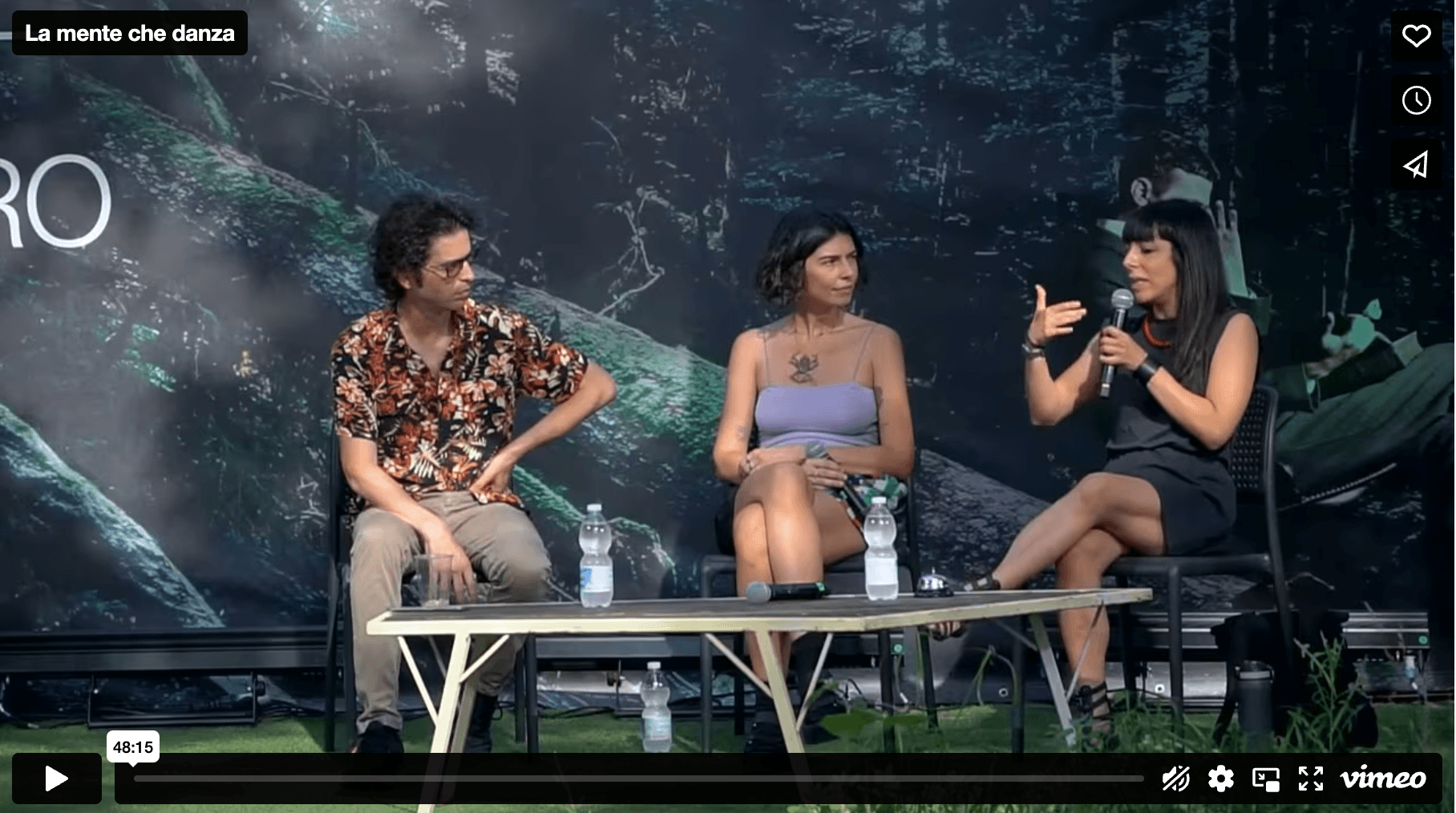 L’ibridazione dei linguaggi e delle discipline è ciò che unisce i percorsi di Paolo Pecere, Francesca Pennini e Stella Succi: la danza come linguaggio universale, pratica quotidiana, ricerca drammatugica. Un dialogo che nasce per giocare con le idee di Il dio che danza, un saggio filosofico-antropologico che diventa un viaggio sulle tracce di danze e rituali dionisiaci in giro per il mondo: la Taranta in Salento, il theyyam in Kerala, le danze sufi in Pakistan, il vodu in Benin, le cerimonie degli sciamani in Amazzonia e quelle delle tribù urbane a New York.